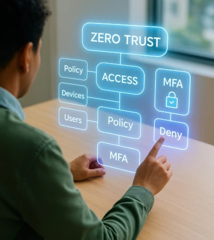 Zero Trust is not a specific product; it is a security philosophy based on a simple mantra: "Never trust, always verify." Unlike traditional security models that assume everything inside the network is safe, Zero Trust assumes that threats exist both inside and outside the network. This approach ensures that every access request is fully authenticated, authorized, and encrypted before granting access.